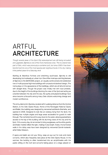 Our e-book production, a travel guide to Oslo, shows just how magical the combination of a passion for storytelling and more than a decade’s worth of experience of creating sophisticated design products really is.